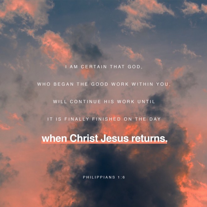 One day, it will all be over, literally. One day there will be nothing else to do, no one else to witness to, no one left to argue with, because on that day, Christ Jesus will be coming back. We have the best day to look forward to, don’t we?