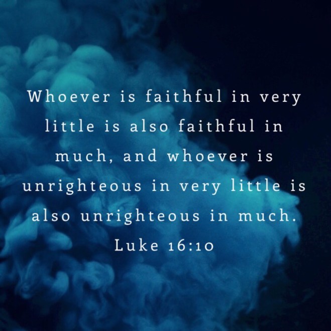 I’ve read this verse dozens of times, usually with Ephesus on the righteous side of it. Being faithful in a few things will lead to God giving you more things to be responsible for. It’s a sign of wisdom. If you are faithful to produce in a job of $10, you can be trusted with. Job of $20, $100, and so on. When little things matter, you can be trusted with bigger things.