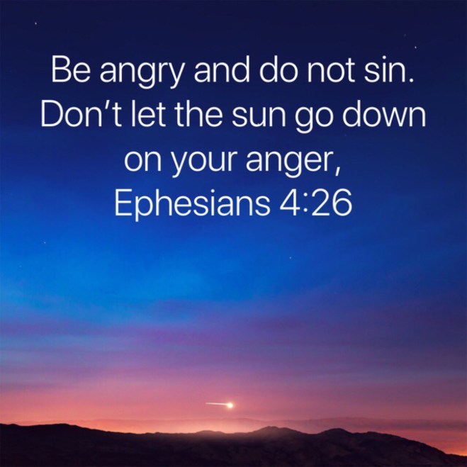 The beautiful thing about this text is the time limit. I love how the verse both gives you permission to be angry “Be angry but do not sin” and then gives you a time limit “Don’t let the sun go down on your anger”. Well.