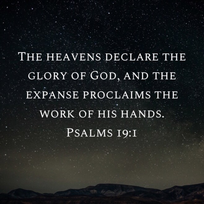 Because “the heavens declare the glory of God”. God’s glory isn’t just something shiny and pretty to look at. The glory of God is the wonder of his handiwork. Your own accomplishments are your own glory, and speak to the kind of person you are. The heavens are God’s glory, and speak to the kind of person He is. What do the heavens tell us about God? Space is big. God must be bigger, since nothing made can be more than the one who made it.