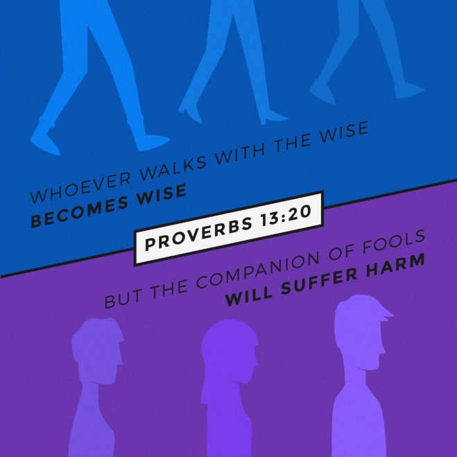 Paul says that bad company corrupts good morals. Solomon would agree. He recommends walking with people who are wise, at least wiser that you. Walk with mature people, people who have been there and done that and learned a lesson. Then you too might learn something.