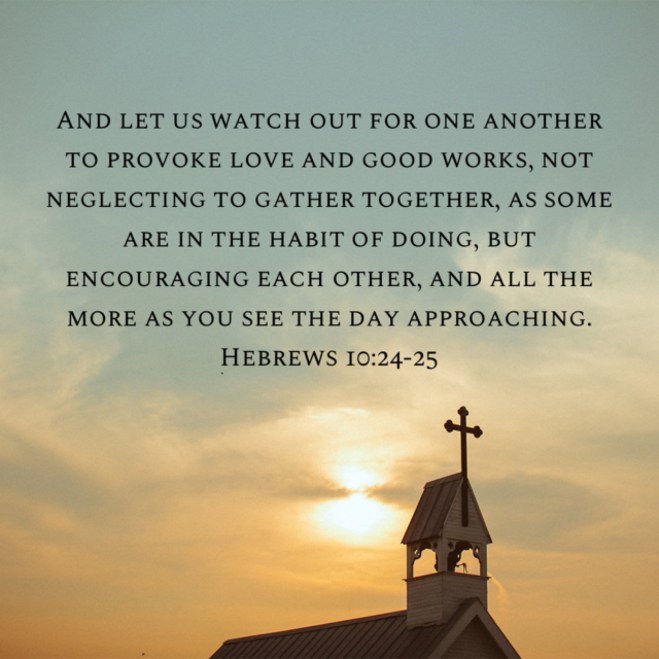 Are there people around you silently suffering? Offer encouragement. We can encourage by correction. But also by offering a kind word. By reminding them that the community is there for them. Do not neglect meeting together, because we all need the encouragement from week to week. If you try to practice this faith on your own, it will fail you when tested.