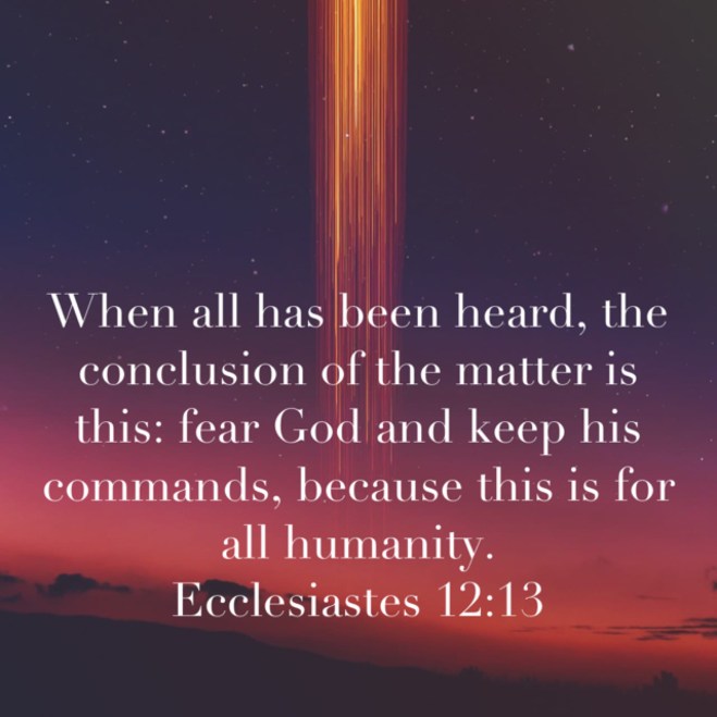 Solomon suggests that we fear God and keep His commandments. This is the end of the law. This is the goal of all that has been written. Maybe I’ve needed to rant a bit, and I thank you for reading this far. And maybe all of this is to point out to us what’s really important in this life. Priorities are changing. We need to review those priorities in light of our walk with Christ. What is it to be a Christian in the middle of all of this? I think it means more than watching TV and moping around the house. Now is the chance to catch on your Bible reading, break out that study guide you’ve been meaning to get into. Catch up on a sermon series you’ve missed online or offer to help in your community in any way that you can. Call some elderly folks in your church and see how they are doing. You know they’ll appreciate the visit.