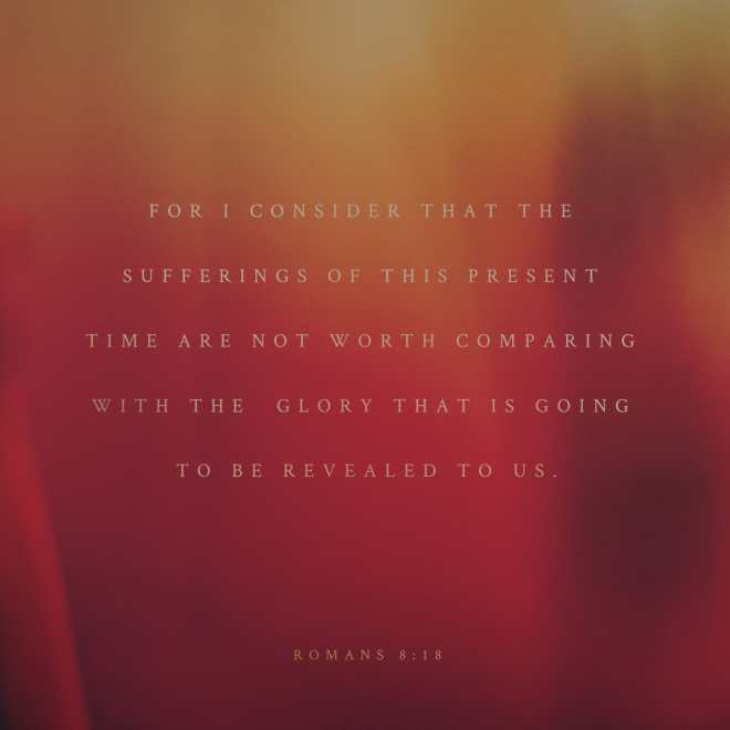 But with this promise of suffering comes a promise of peace. We know better. We know that this world is only temporary. We know that despite our 70-90 odd years we spend here, and it feels like an eternity, we know its really not, because we have already started living our abundant life, our eternal life, changed not in presence but in quality. We are living today, whether or not we suffer at present, in the Presence of the Lord God. He has already conquered everything in this world that matters. He is Lord of all. He is King of the Universe, and nothing, not even the fact that we suffer, escapes His notice. In this we have peace. Though we suffer, we do not suffer alone. We suffer before Him, being poured as as pure offerings of worship before Him. Let God be glorified in our weaknesses. Let us show to others that even though we suffer, we prove that our faith does not depend on good times. Our faith does not depend on blessing. Our faith depends on the sure and certain promises of the Lord Jesus Christ, and in Him alone is our faith.