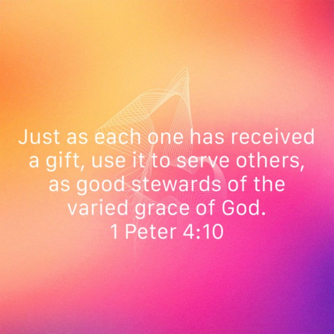 Peter advocated to us this morning that we ought to serve as good stewards of God’s gifts to us. Had has indeed given to each of us everything we need to serve His purposes in this world. For every purpose He has planned for you, He has equipped you to carry it out. So as we go forth today to serve Him, remember that God has called you to a particular purpose.